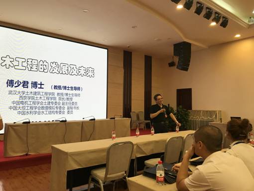 开班仪式上,黄文准副校长介绍了我校的基本情况和教学安排;傅少君院长介绍了土木学院的科研水平和师资情况;区住建局局长吴海军要求全体学员要珍惜这次学习机会,把学到的知识和才干运用到工作中去,希望学员学有所思,学有所成;区协调办主任梅春满通报了全区校地融合成果,并对学员提出了殷切的希望。最后,傅少君院长做了题为“土木工程的发展及未来”的精彩报告。