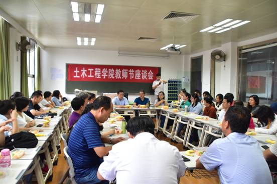 9月11日下午,土木工程学院在3532教室举行了“双节”座谈会,教学督导处的吕荣生教授受邀参加了本次座谈会,本次座谈会由谢明副院长主持。首先傅少君院长对吕教授的到来表示热烈欢迎,同时送来迟到的教师节问候和对中秋节的深切祝福。傅院长对我院的发展提出殷切的希望,他希望全院教师能注重师德建设,对教师尊重,对教师这个行业尊重;关心和爱护学生,注重传道授业的同时,更要像关爱自己的孩子一样关爱自己的学生;同时借此次座谈会,教师们畅所欲言,为土木工程学院的发展谏言献策。