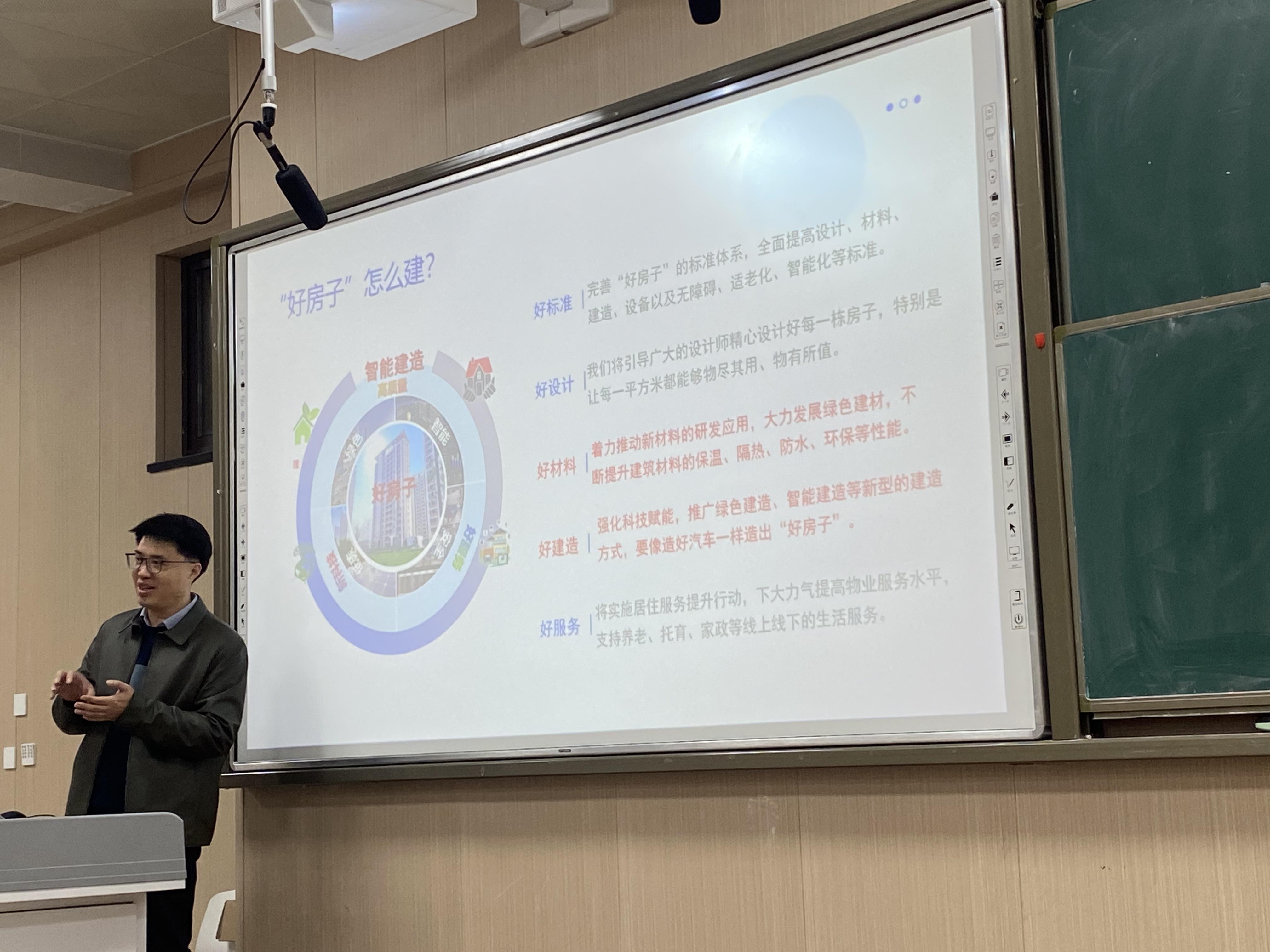 10月29日下午,土木工程学院土木工程系在1101教室举办“陕西省智能建造与新型建筑工业化实施路径”专题报告会。报告会特邀陕西省住建厅智能建造与新型建筑工业化产业链专班技术负责人、陕西省建筑节能协会副会长谢诚正高级工程师担任主讲,土木工程系全体教师及智能建造、土木工程专业学生共同参加。