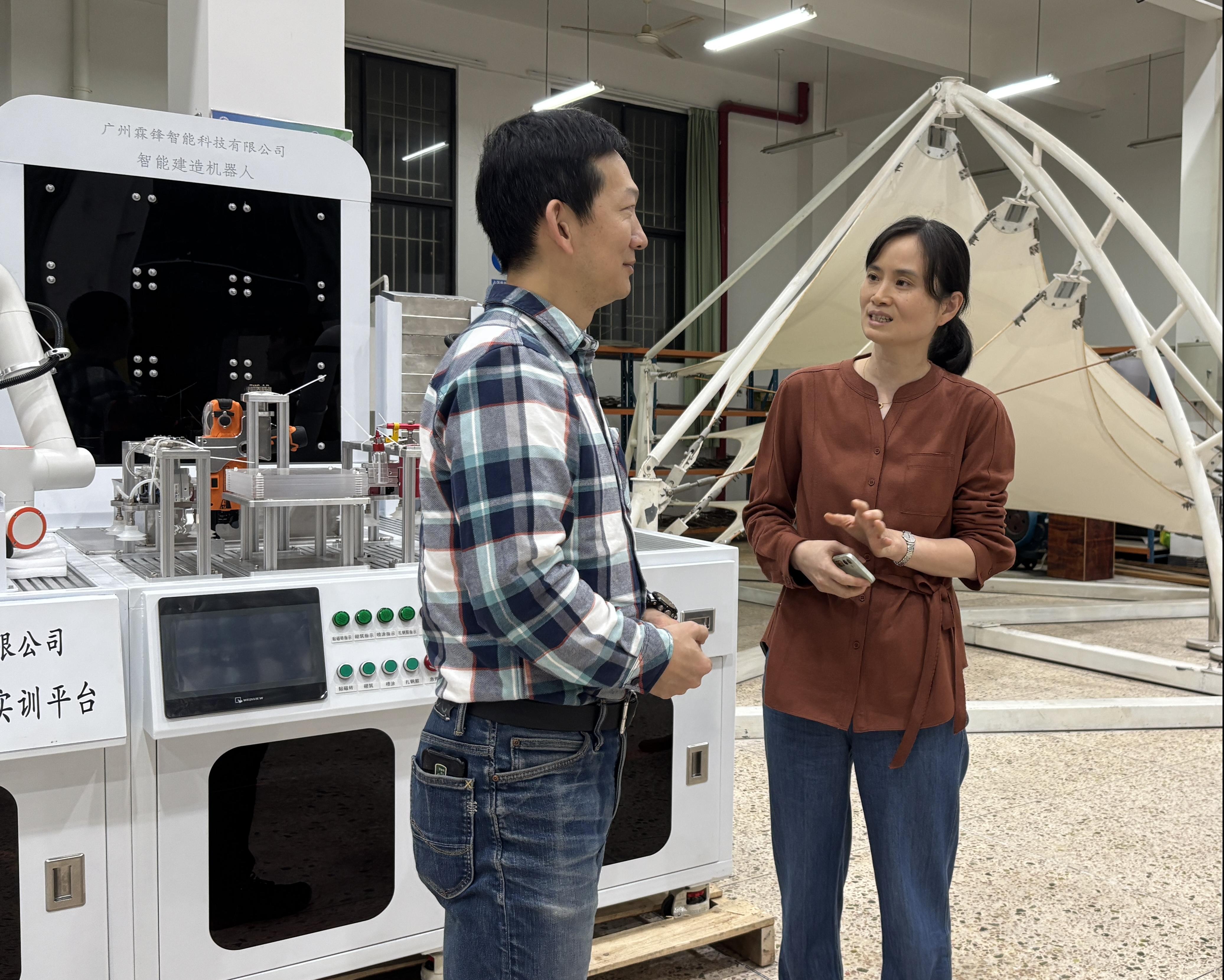 交流期间,在郑莲琼老师的陪同下,郭培玺主任一行参观了智能建造专业相关实验室,进一步了解了实验教学平台建设与科研设施配置情况。