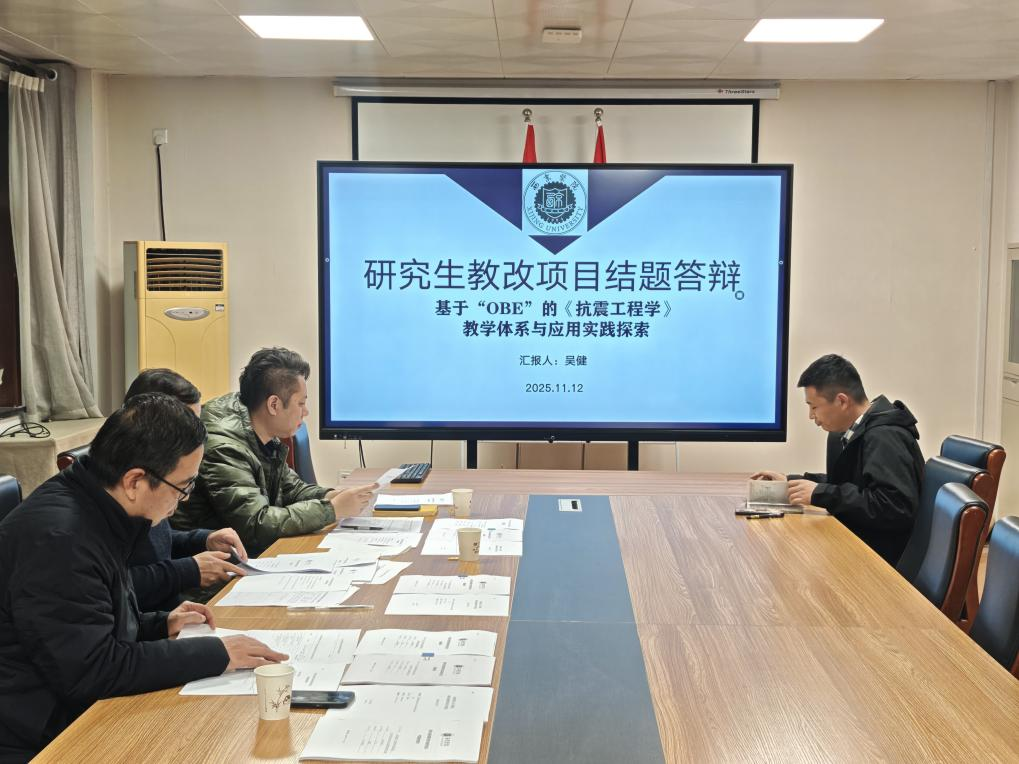 会议对学院多项研究生教育质量工程项目进行了评审。经专家组评议,张爱军老师主持的《面向新质生产力发展和行业形势变化的土木工程专业学位研究生培养模式改革研究与实践》项目通过中期检查;吴健老师主持的《基于“OBE”的《抗震工程学》教学体系与应用实践探索》项目结题验收等级为“优秀”;习羽老师主持的《以学科为基础、以产业为导向的专业学位研究生实践模式研究与实践》项目验收等级为“合格”。