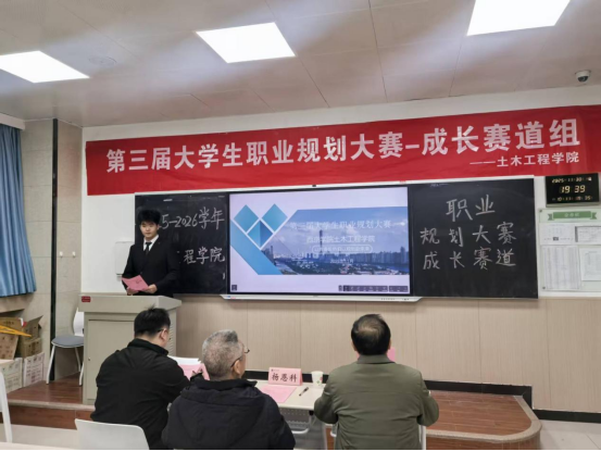 为贯彻落实学校2025年创业就业工作会议精神,强化大学生的职业生涯规划意识,引导大学生树立正确的职业观念,提升职业素养与就业竞争力,11月30日,土木工程学院于1129、1130教室举办了第三届大学生职业规划大赛决赛。