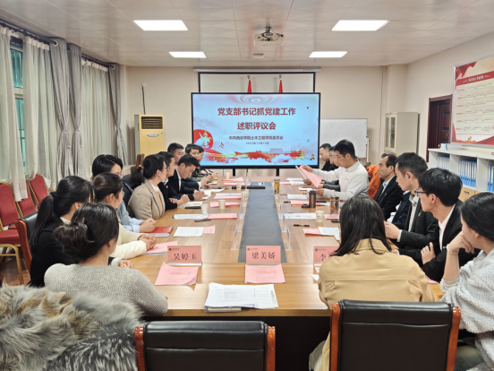 为深入学习贯彻党的二十大及二十届历次全会精神,扎实推进党建与事业发展深度融合,以高质量党建引领学院各项事业高质量发展,12月19日下午,土木工程学院党委在2号办公楼206会议室召开2025年度党支部书记抓党建工作述职评议会。副校长黄文准、学院院长傅少君、党委委员、各支部书记及委员、师生代表出席会议。会议由学院党委书记王培涛主持。