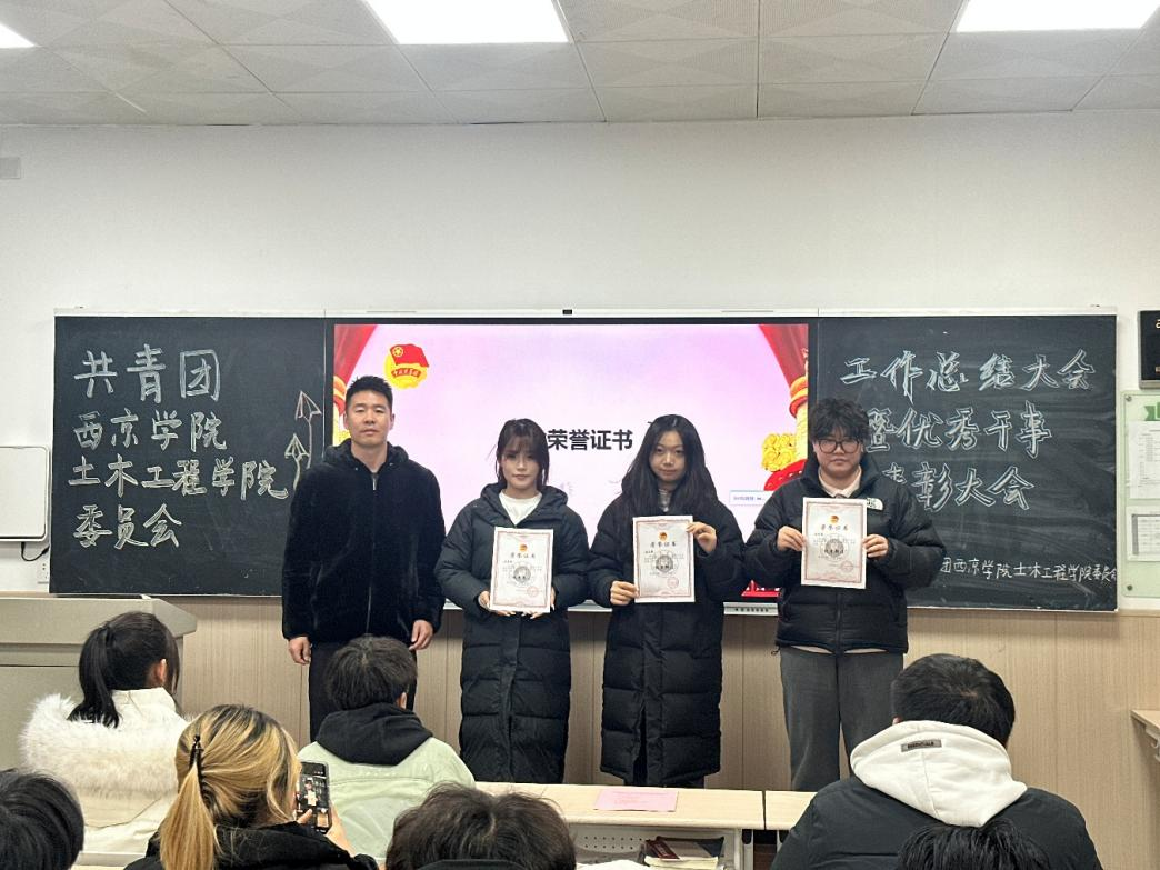 12月21日,共青团西京学院土木工程学院委员会工作总结暨表彰大会在1125教室顺利举行。团委书记王宁老师出席,团委全体学生干部齐聚一堂,共同回顾过往工作、表彰先进典型、共话未来发展。