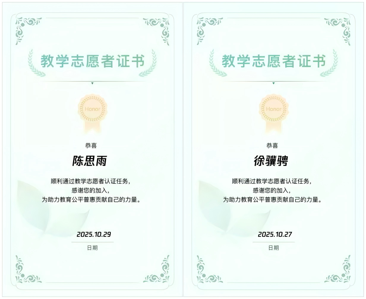 得知线上企鹅支教志愿服务项目招募志愿者,陈思雨、徐骥骋第一时间报名参加。经过系统培训与严格考核,两人顺利获得教育志愿者证书。陈思雨对接榆林市榆阳区小纪汗镇中心小学,为33名小学生讲授音乐基础课程;徐骥骋对接镇巴县长岭镇中心小学,为52名小学生讲授人工智能启蒙课程。授课过程中,两人充分考虑学生年龄特点和认知水平,精心设计教学内容,通过互动问答、即时反馈等方式调动课堂氛围,让孩子们在轻松愉快的环境中感受学习的乐趣。课后,许多孩子主动向志愿者表达感谢,表示课堂不仅让他们学到了新知识,更感受到被关心、被鼓励的温暖。