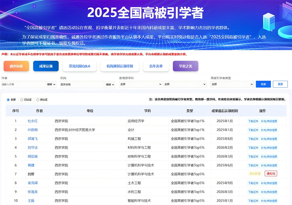本次入选的两位学者,长期聚焦本学科前沿研究,在高水平期刊发表系列标志性成果,论文被引与学术贡献位居全国前列,研究成果对学科发展与行业实践形成重要支撑。