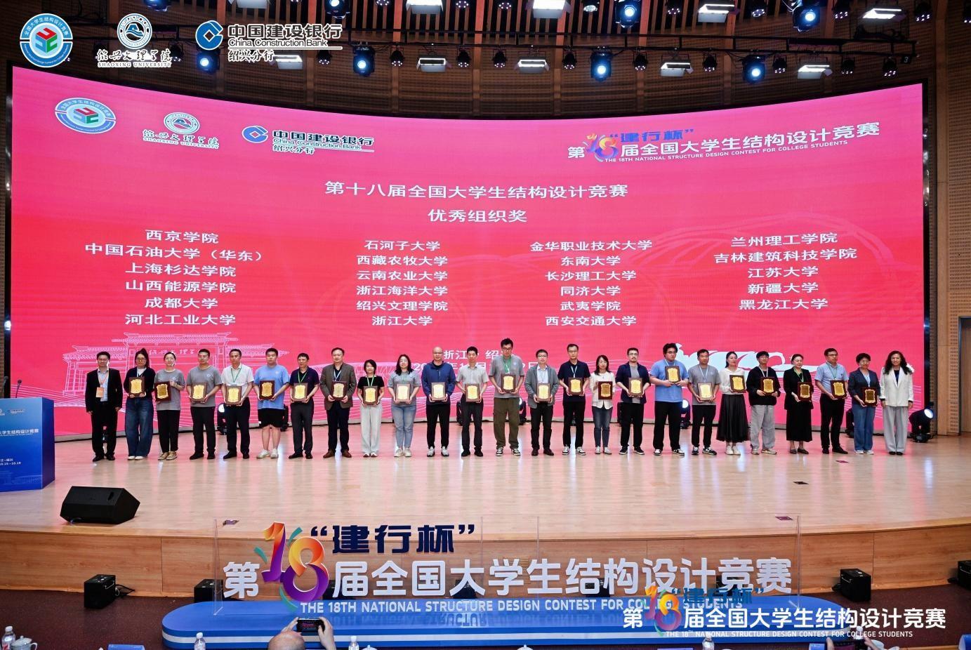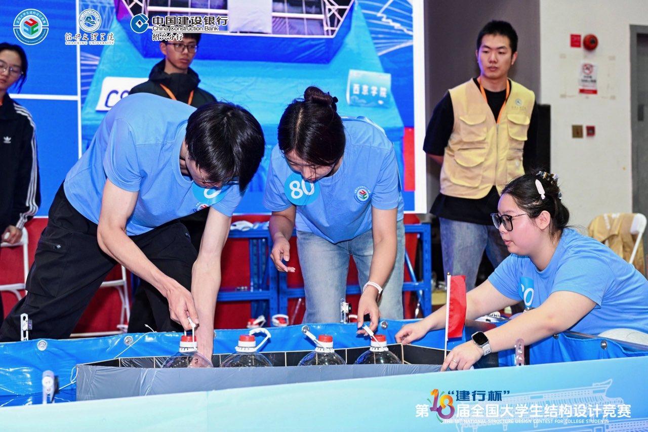 10月15日至19日,第十八届“建行杯”全国大学生结构设计总决赛在绍兴文理学院风则江校区体育馆圆满落幕。本次赛事汇聚了全国591所高校、1792支参赛队历经分区赛选拔出的119所高校120支精英队伍,上演了一场高水平的结构设计巅峰对决。我校土木工程学院副院长张海龙、指导教师刘明明带领赵婉婷、吴佳慧、张东三位同学组成参赛队,凭借扎实的专业功底和出色的实践能力脱颖而出,最终斩获国家级二等奖1项及优秀组织奖1项。